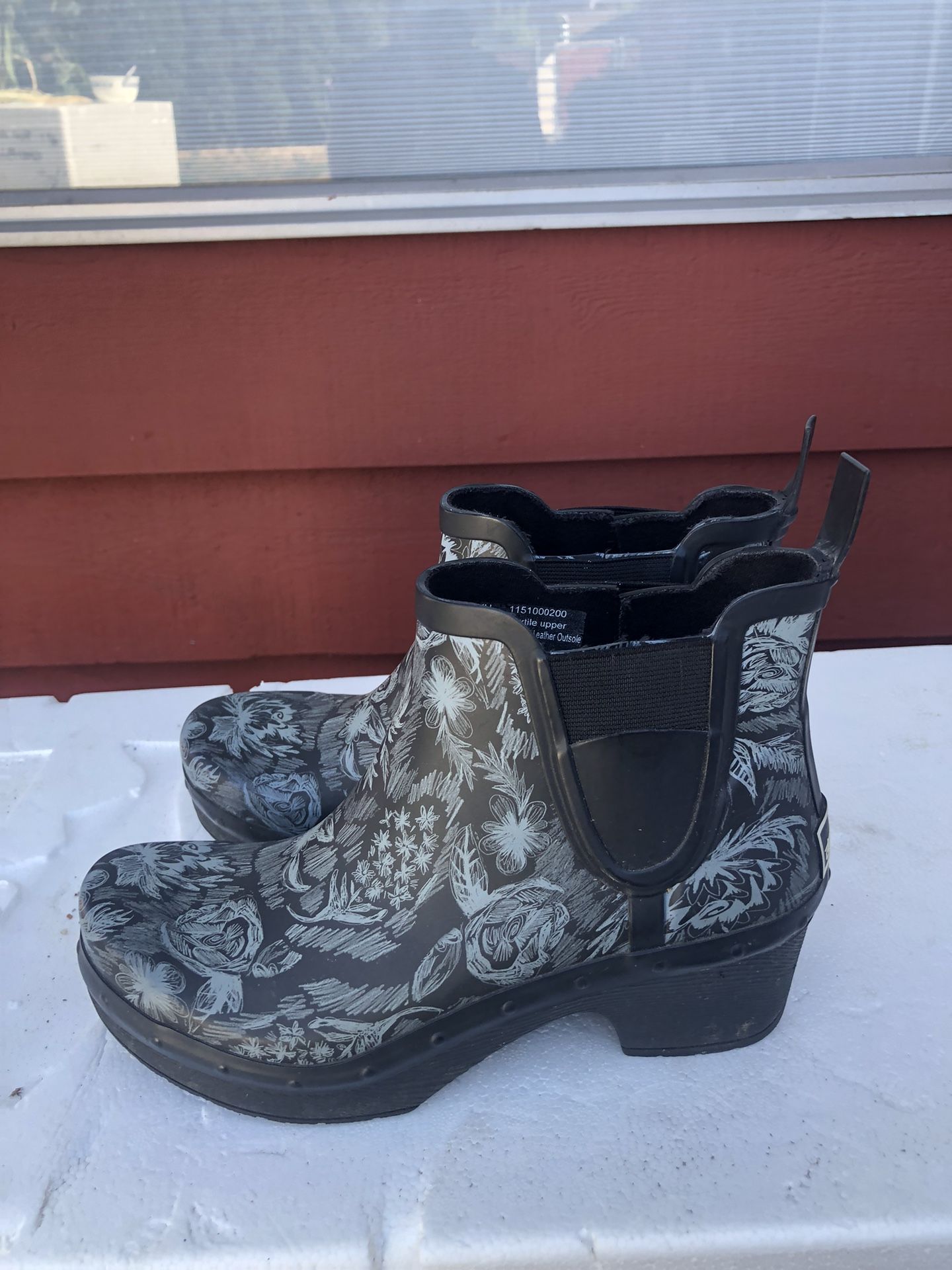 Dansko Rosa Women’s Black Grey Florals Rain Boots Size 38/7.5US. Step out in style with these chic floral black ankle boots. Perfect for any occasion, these boots offer both comfort and elegance. G2-Top Rack