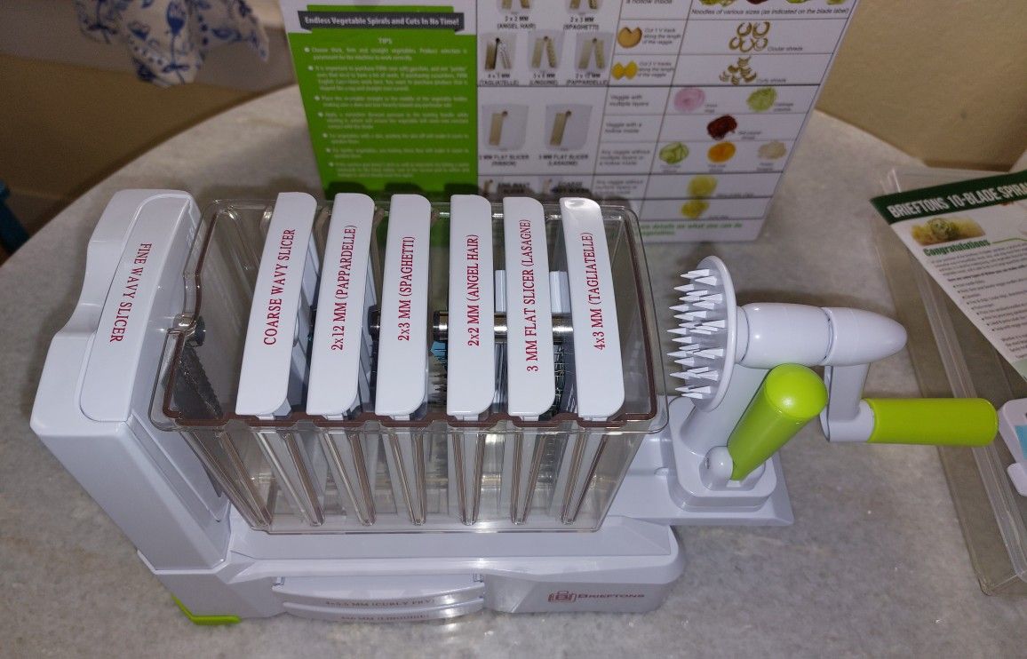 Brieftons brand 10 blade vegetable spiralizer in excellent condition. Several blades never used. Downtown North Everett porch pickup $7.