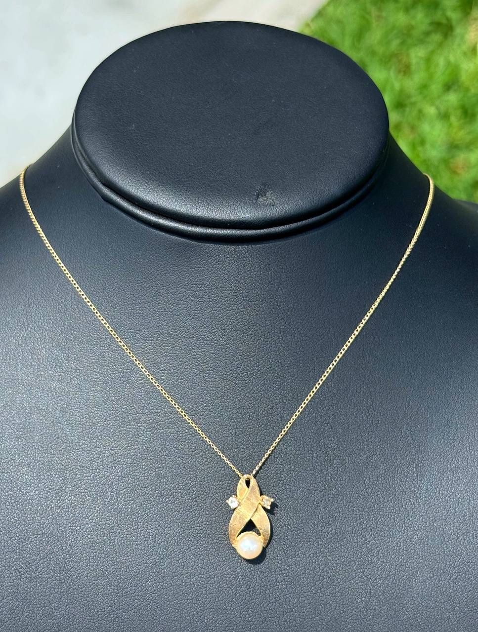 Jewelry 14k yellow gold Cuban necklace chain 18.5" 1.00mm width pearl CZ pendant