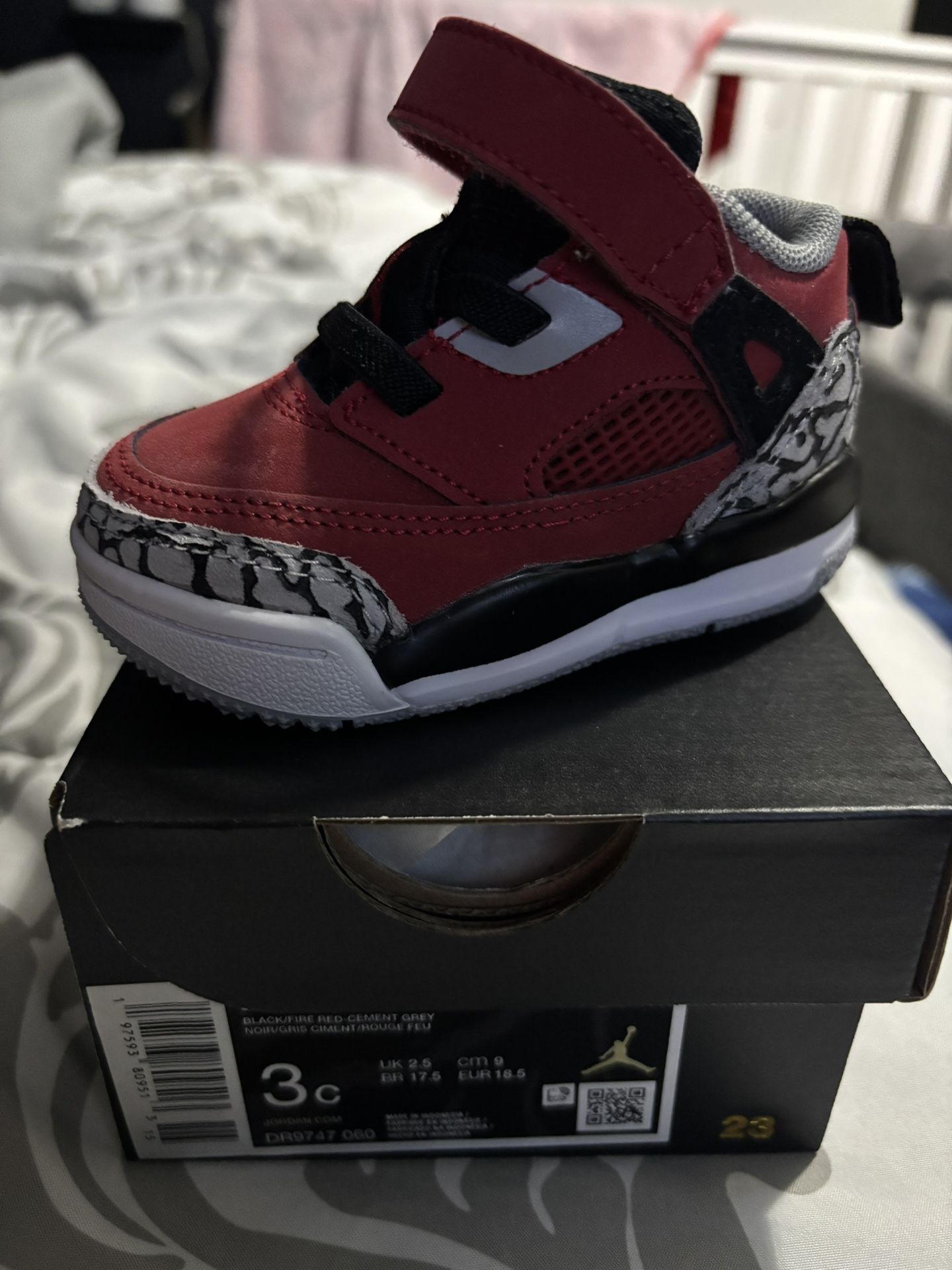 Jordan Black/Fire Red-Cement Grey size 3c $40 Nike all black size 2c $40 Nike grey, black and red size 3c $40 All 3 pairs for $100