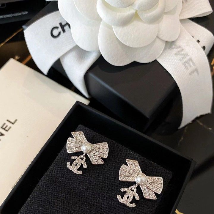 Brand New Diamond Crystal Bow & Pearl Women's Earrings