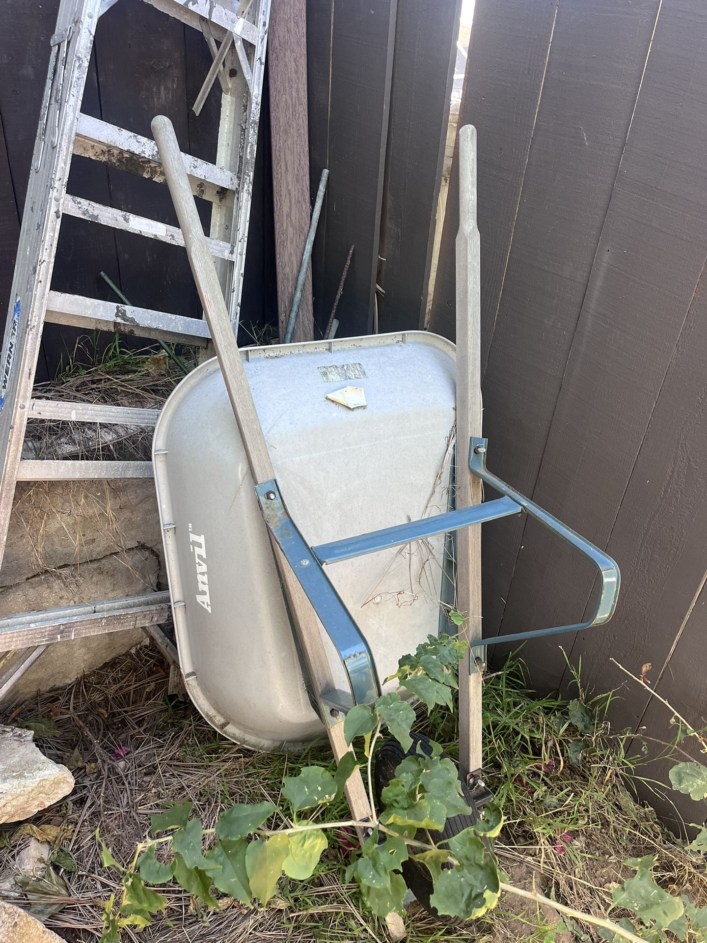 Anvil wheelbarrow from Home Depot 6 cu. Ft. Steel tub with wheels and wooden handles Retails for $109 asking $50 located in ocean beach