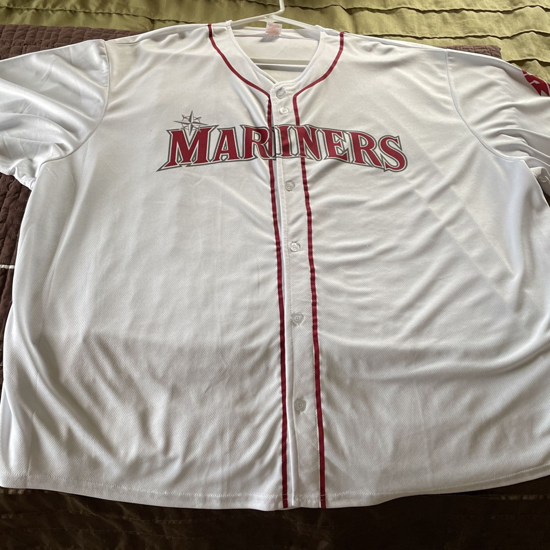White with mariners logo in WSU colors. Size men’s XXL. 100% polyester.