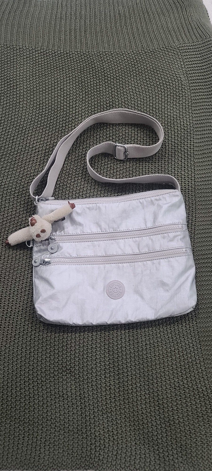 Kipling Alvar Metalic Silver Lg Crossbody Bag Retro Boho Gorpcore Metallic