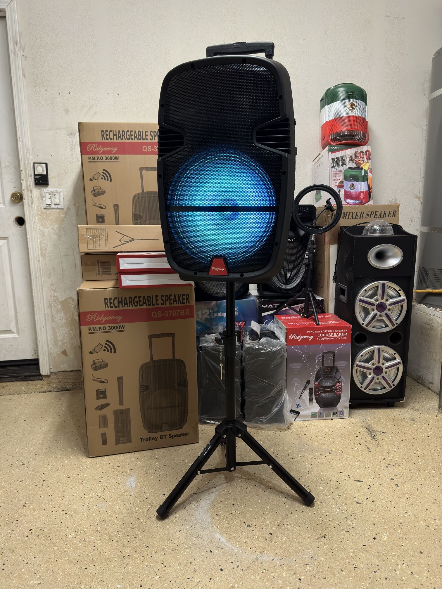 Rechargeable Music player - 15” Woofer MICROPHONE & CHARGER INCLUDED ! Bluetooth - Fm Radio - Rechargeable USB PORT - SD MEMORY SLOT - Portable Compatible with any Bluetooth device ! VERY LOUD ! GREAT FOR OUTDOORS AND PARTIES !