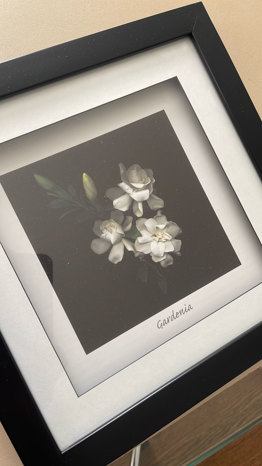 Flower art with black frame, 11.5” x 11.5”
