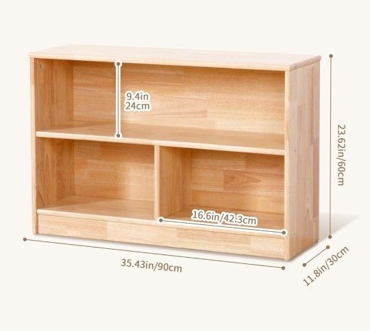 New OOOK Rubber Wood 3-Compartment Wooden Storage Cabinet, 35.4" L, 2-Tier Toy Organizers and Storage, Montessori Shelf for Kids Room, Playroom, Nursery, Classroom, Kindergarten