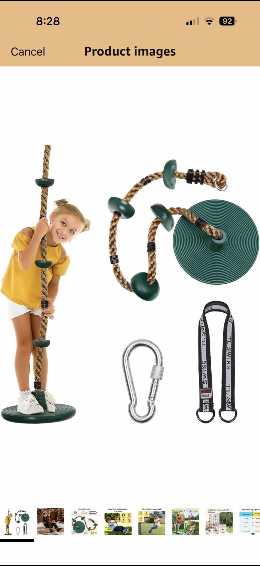 DECORLIFE Tree Swing for Kids, Adjustable Rope Swing Disc Swing for Outside with Platform Carabiners and Strap Outdoor, Playground Accessories, Green