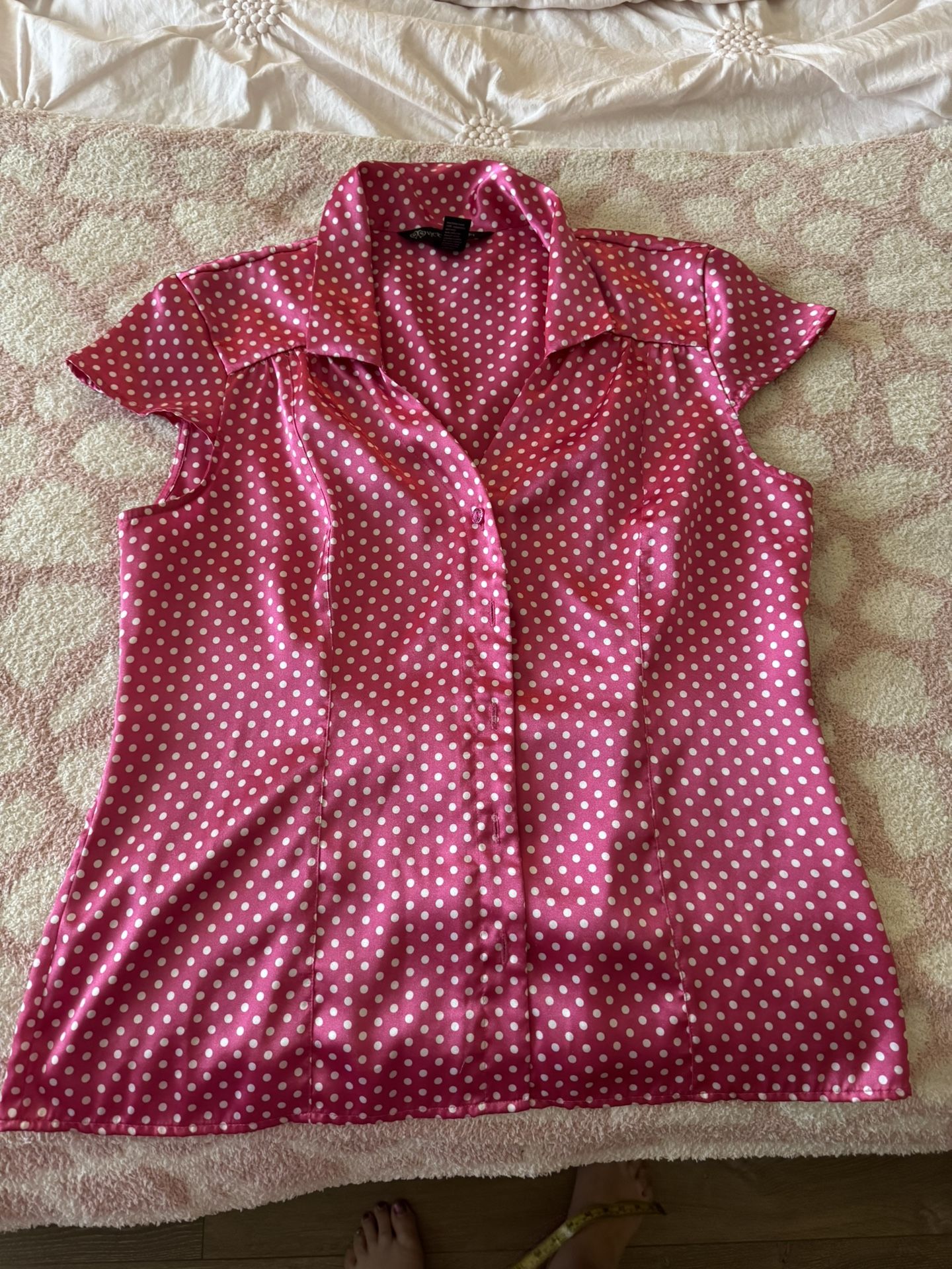 Victoria's Secret M Pink Satin white Polka Dot top blouse shirt