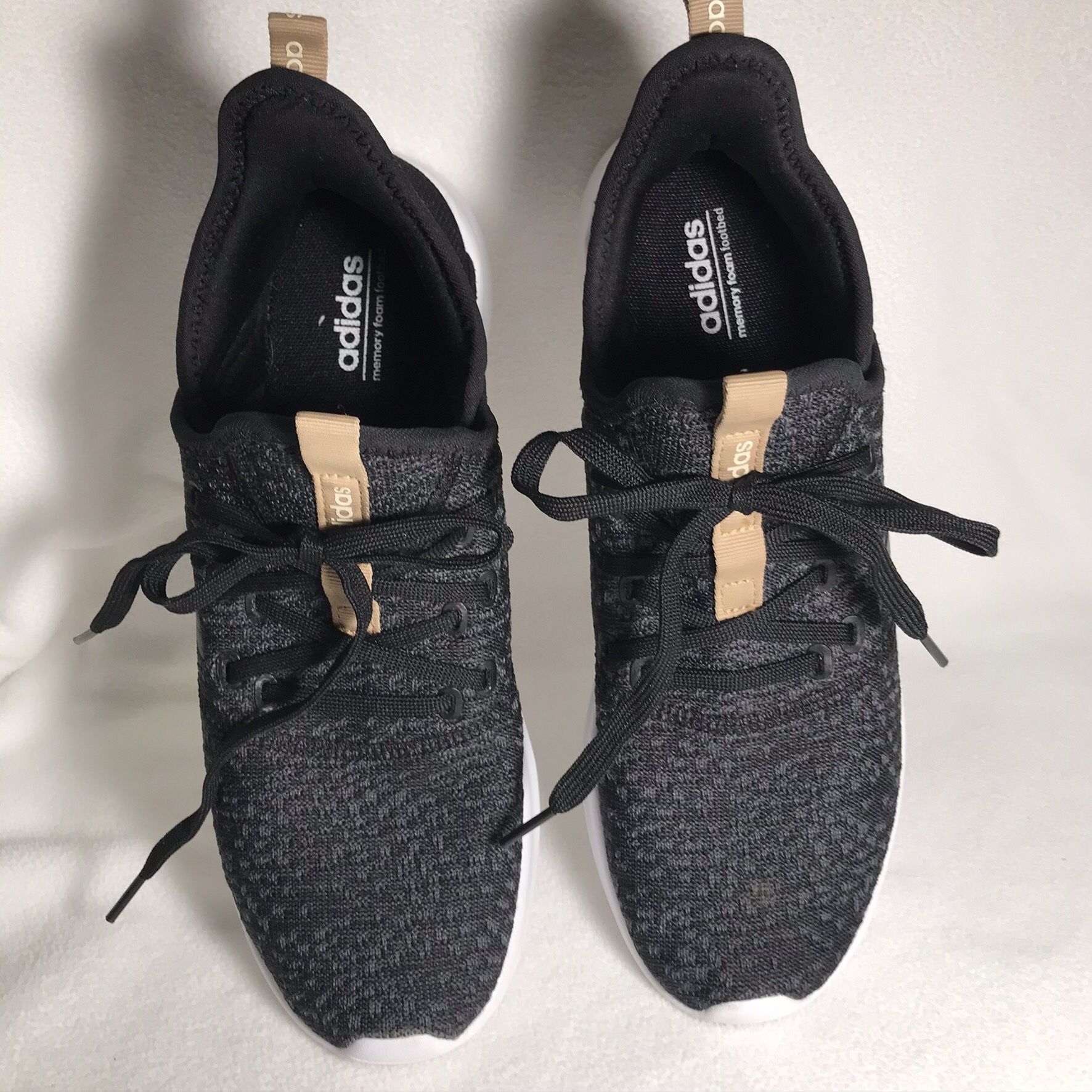 Men’s size 10 Adidas black/dark grey tennis shoes. Very clean with a lot of wear left. These are memory foam inserts.