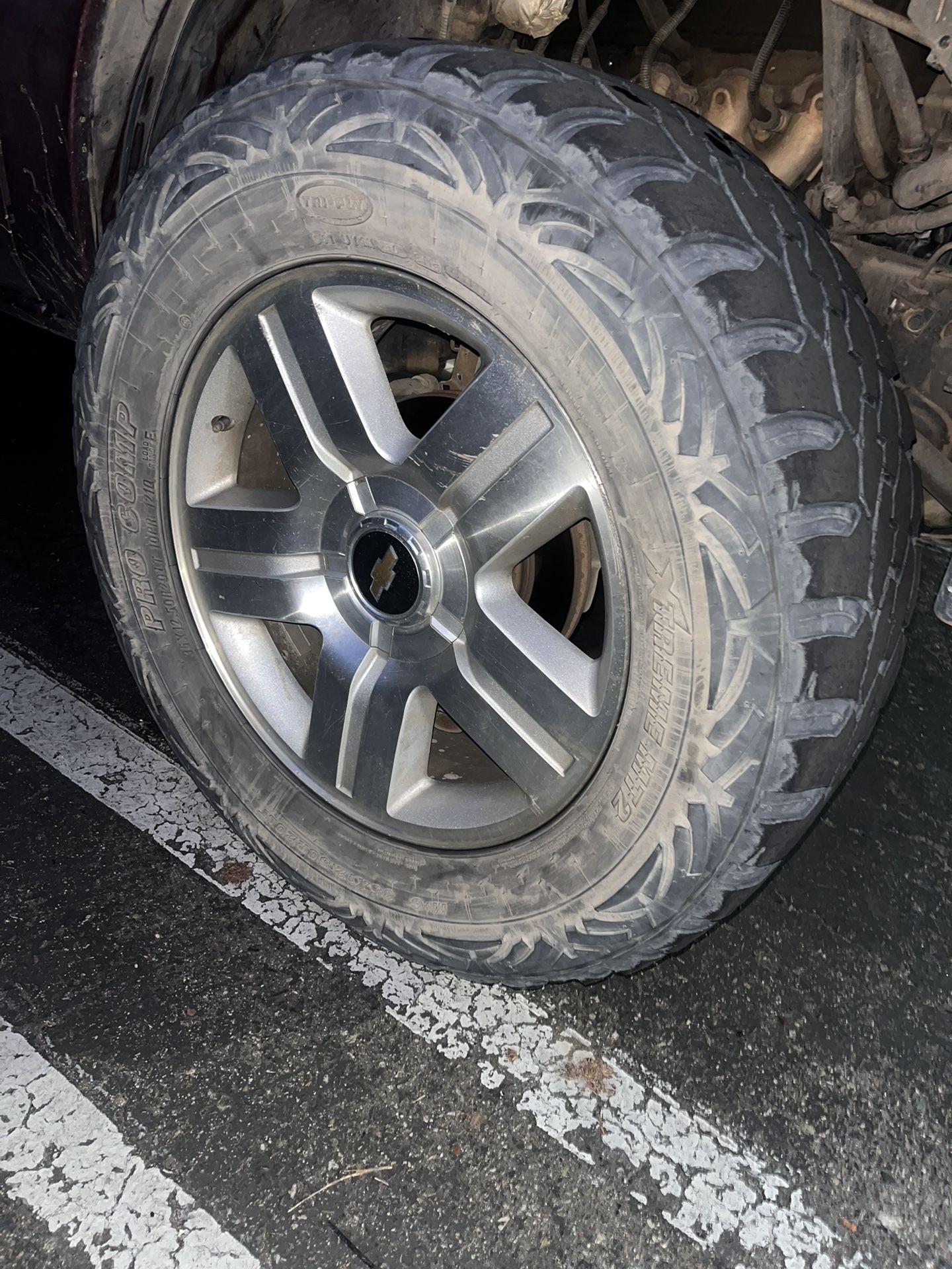 20 inch texas edition rims on 35 inch tires. back ones are pretty much bald front tires still have some tread. 35x12.50R20 open to trades LMK