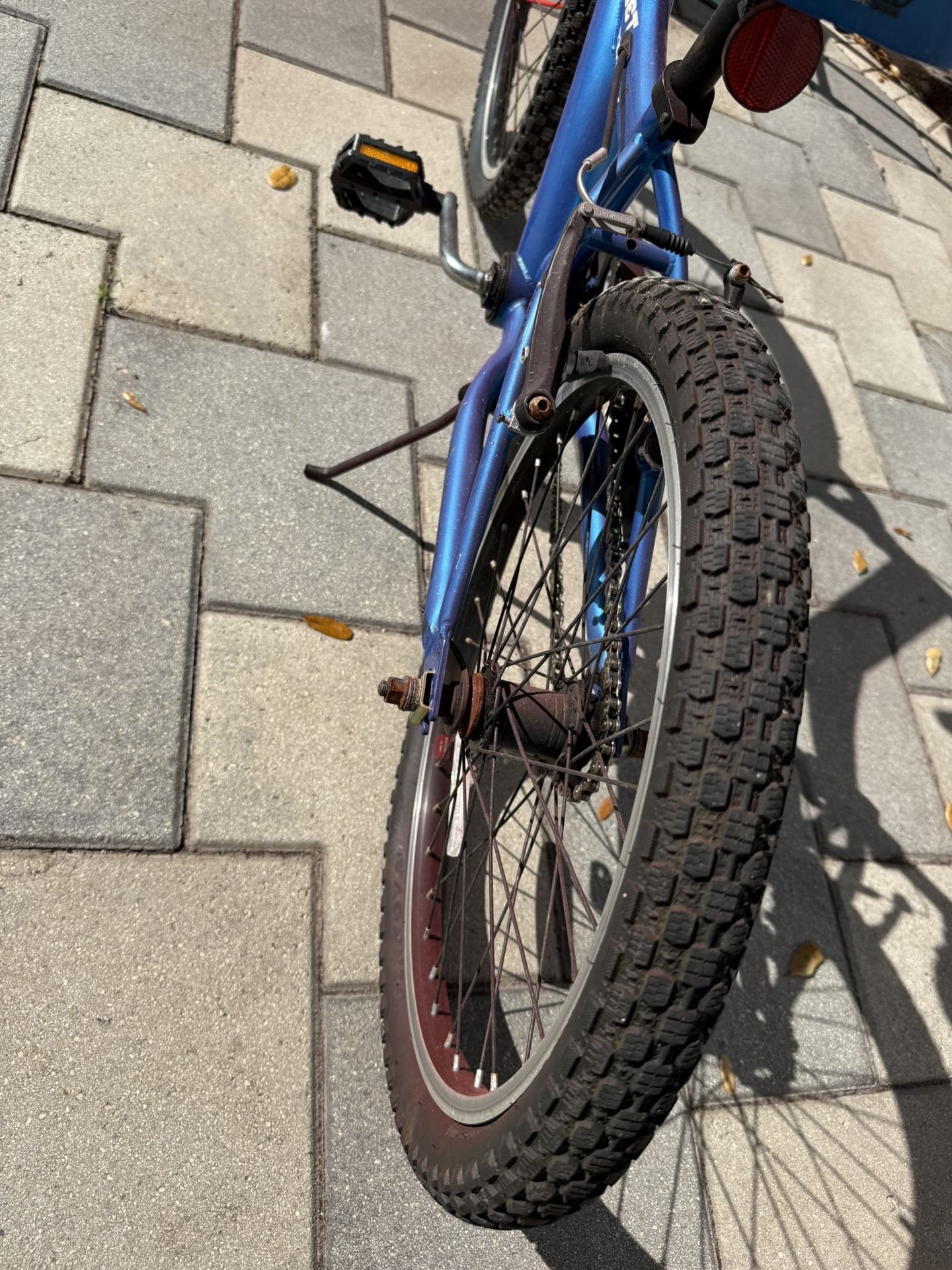 Versatile kid’s bike for young adventurers. Lightweight frame and quality components. Smaller hand breaks perfectly sized for smaller hands. Used, good condition…some scuffs and general wear-and-tear as pictured. Perfect for ages 5 and up.