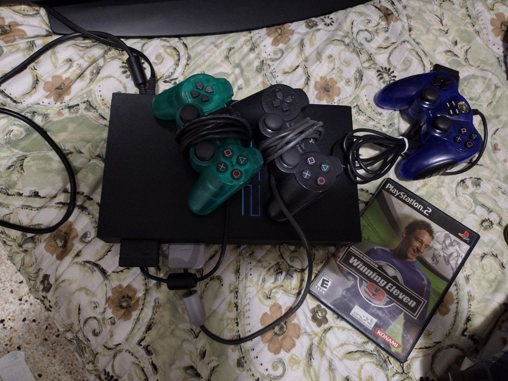 PlayStation 2 One Memory Card, Three Remote Controls, One Soccer Game Also Includes TV