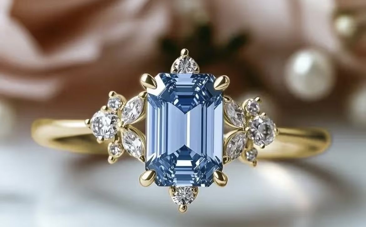 4-Claw Inlay Blue Zirconia Engagement Ring | Exquisite Zirconia Flower Ring for Women, Daily and Wedding Jewelry, KC Golden Plated, READKISS Brand