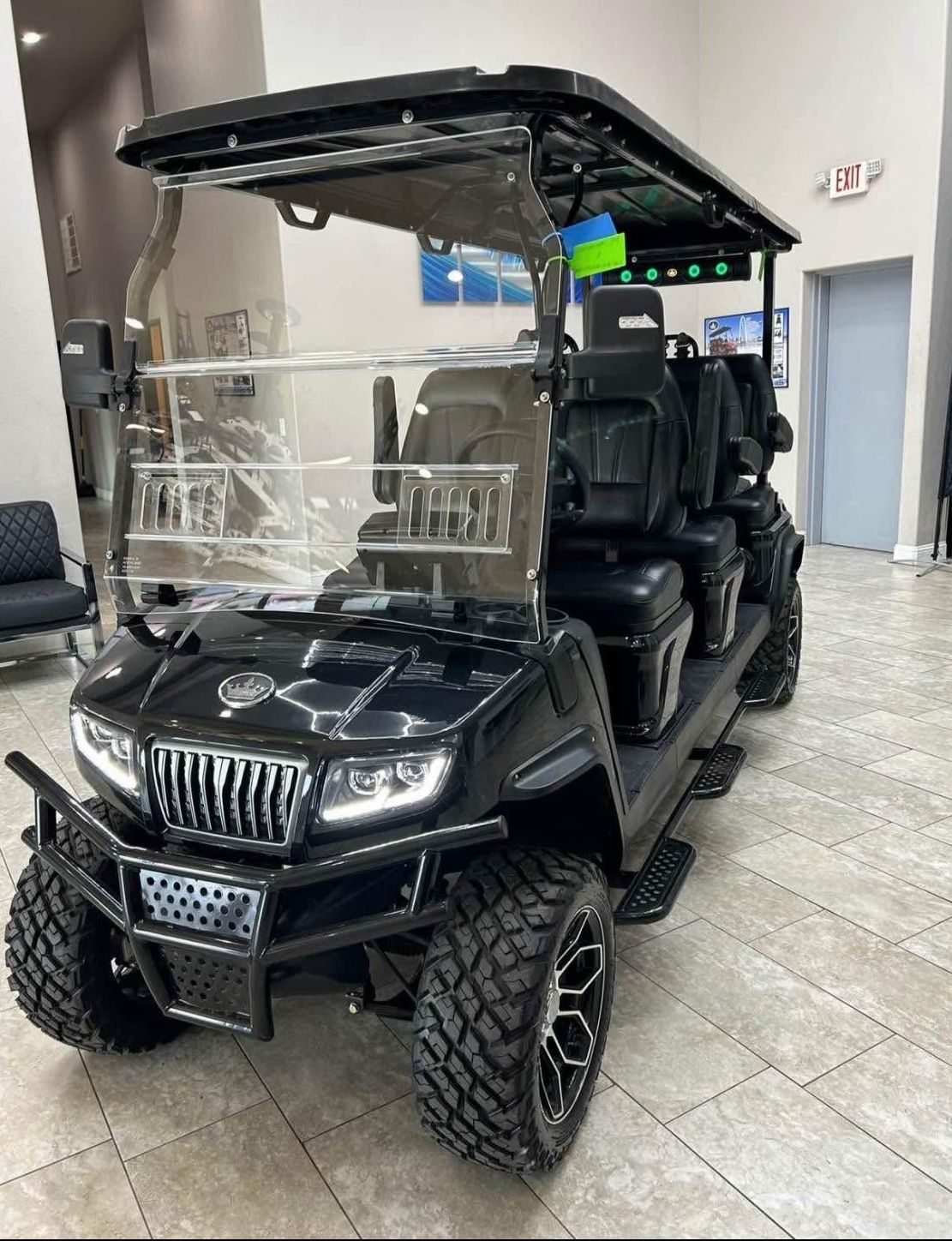 EVolution D5 Maverick 6 😱$0 Down, 0% Interest for 36 Months!!!😱 !!😁2 year Bumper to Bumper Warranty & 8 year Warranty for Battery😁!! Features: 🛣️STREET LEGAL EQUIPPED (LED headlights, taillights, brake lights, 3-point seat belt, horn, sideview mirrors, & turn signals)🛣️ 🧑🧑🧒6 passanger seating🧑🧑🧒 📷Back-up Camera📷 📺9” Multipurpose Touch Screen (Speed Display, Driving Gear Indication, Lights, Radio, Bluetooth connection, Back up camera Image display)📺 📱USB charging ports📱 💙Bluetooth💙 🥤Cup Holders🥤 🎶Sound Bar🎶 🔒Locking Trunk, Locking Gloveboxes🔒 🛞14x7” Aluminum Wheel• 23 x 10-14 Silent Tire with Off-Road Thread🛞 ✅Dimensions• 151.6 x 55.8 x 84.4 inch✅ 💺Luxury Seats with Foldable Armrest💺 🏌🏻♀️Rear Storage Compartment🏌🏻♀️ 🔋48V 110AH Lithium Battery🔋 🔌On Board Smart Charger 25A🔌 ⚡️Top Speed up to 25mph⚡️ ⛳️Foldable Windshield with Slideable Sub- Windows⛳️ 😱$0 Down, 0% Interest for 36 Months!!!😱 🤑Accepting Trade-Ins🤑 These carts are going 💨FAST