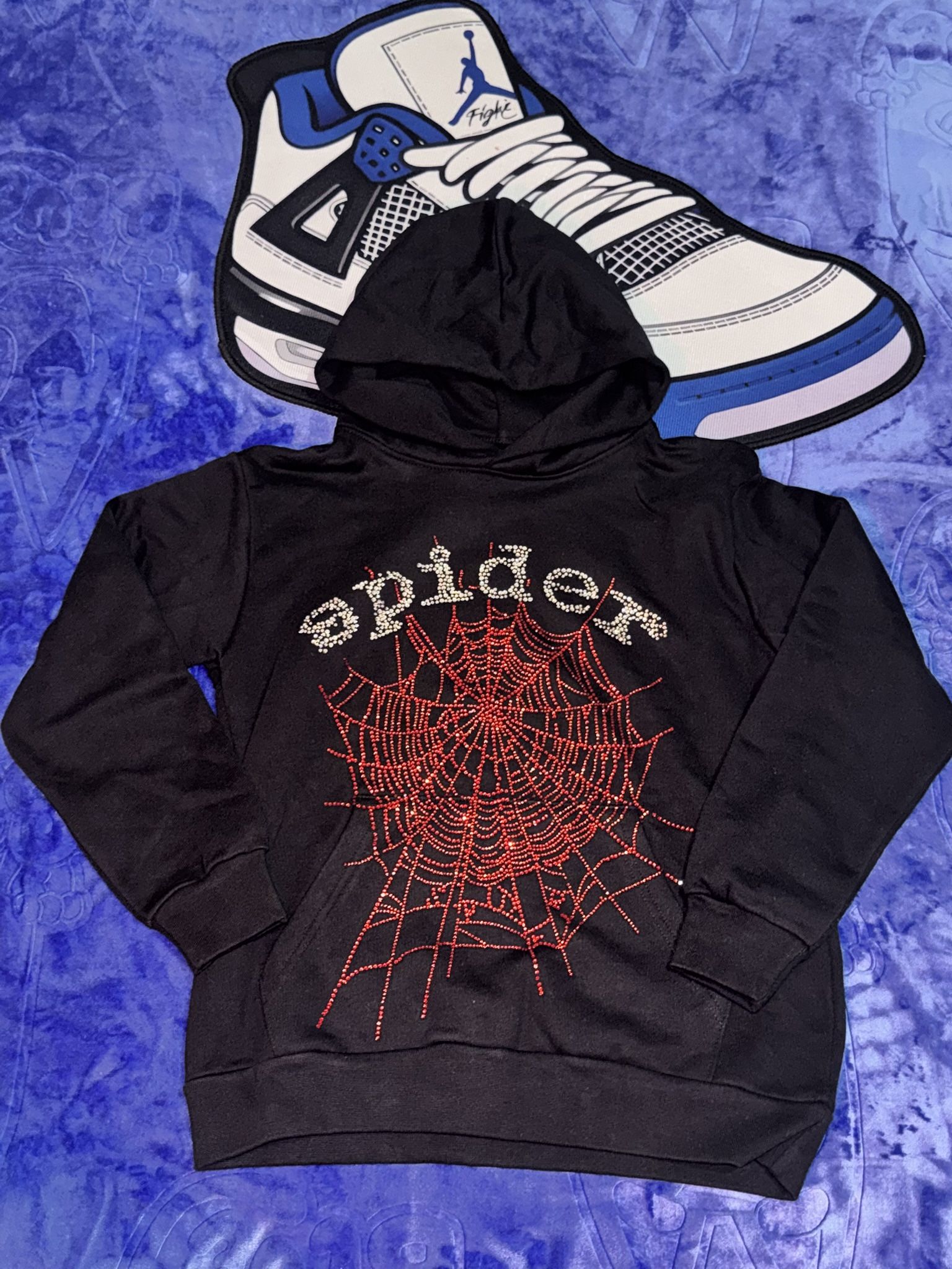 Spider hoodie rine stones red and black