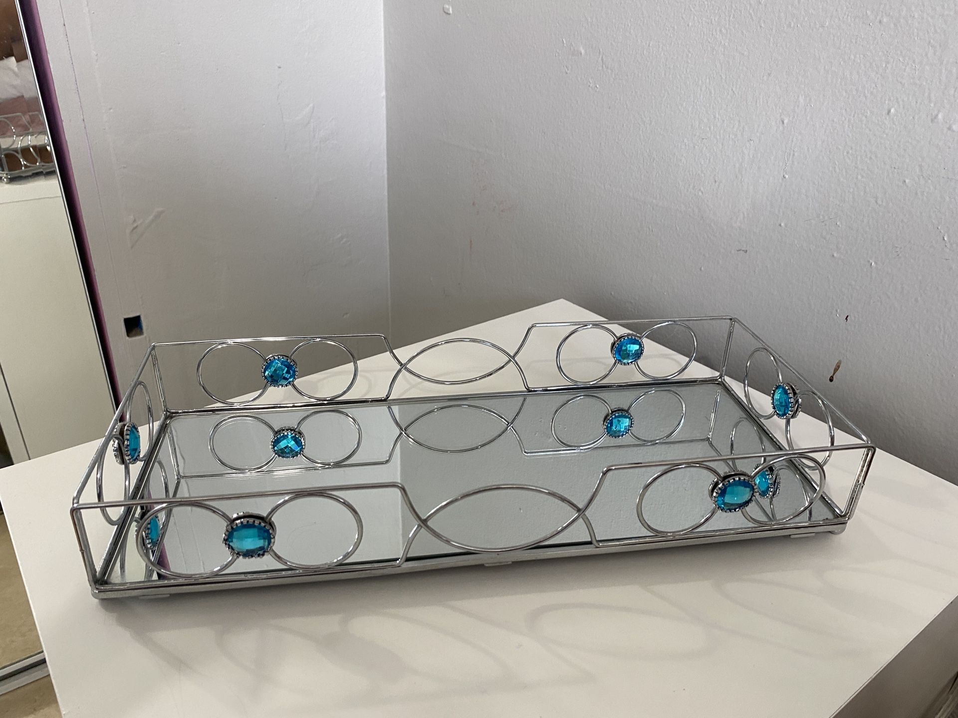 Silver Mirrored Organizer Tray 15.5 in x 6.5 in