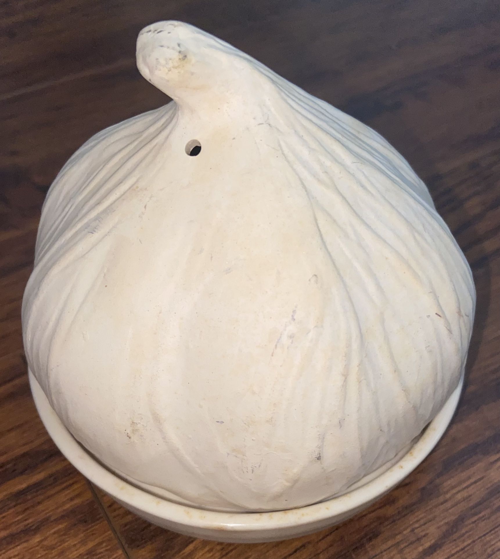 Garlic baker, garlic keeper or garlic roaster. Vintage Boston Warehouse Ceramic Whole Head Garlic Roaster Dish Never used , it’s been in the storage, please see all the pictures.