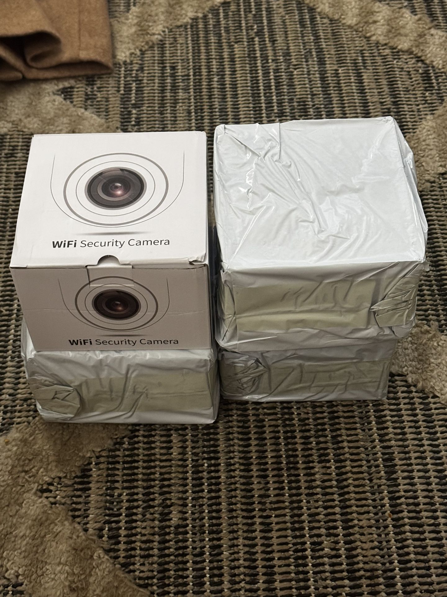 A set of 4 of the latest wireless WiFi cameras with all accessories included. Brand new and so easy to setup that anybody could install It and setup. All you need to do is connect to your WiFi and in 3 steps you’ll be done. The cameras can swivel, tilt, rotate and more and are activated by any movement or sound. They are trained by AI to recognize animals, pets, humans and can even recognize familiar faces so it’s not set off for a false alarm every time. It can notify you wherever you are in the world and you can check in and observe anytime you like. It records and keeps all the data in your own SD Card or in the cloud storage so you could retrieve it anytime you like. You can set it up for several different modes of notifications and alarms and so many more features which are hard to list. But I can tell you that they are wonderful and secure and give you a great sense of security whether you’re at home or outside. This comes from a virus free, smoke free and pet free home. Local pickup is by Schaumburg and Barrington Road in Schaumburg IL 60194 without any tax payable or you can have it shipped to your house through Facebook for one low cost with tracking information included for free.