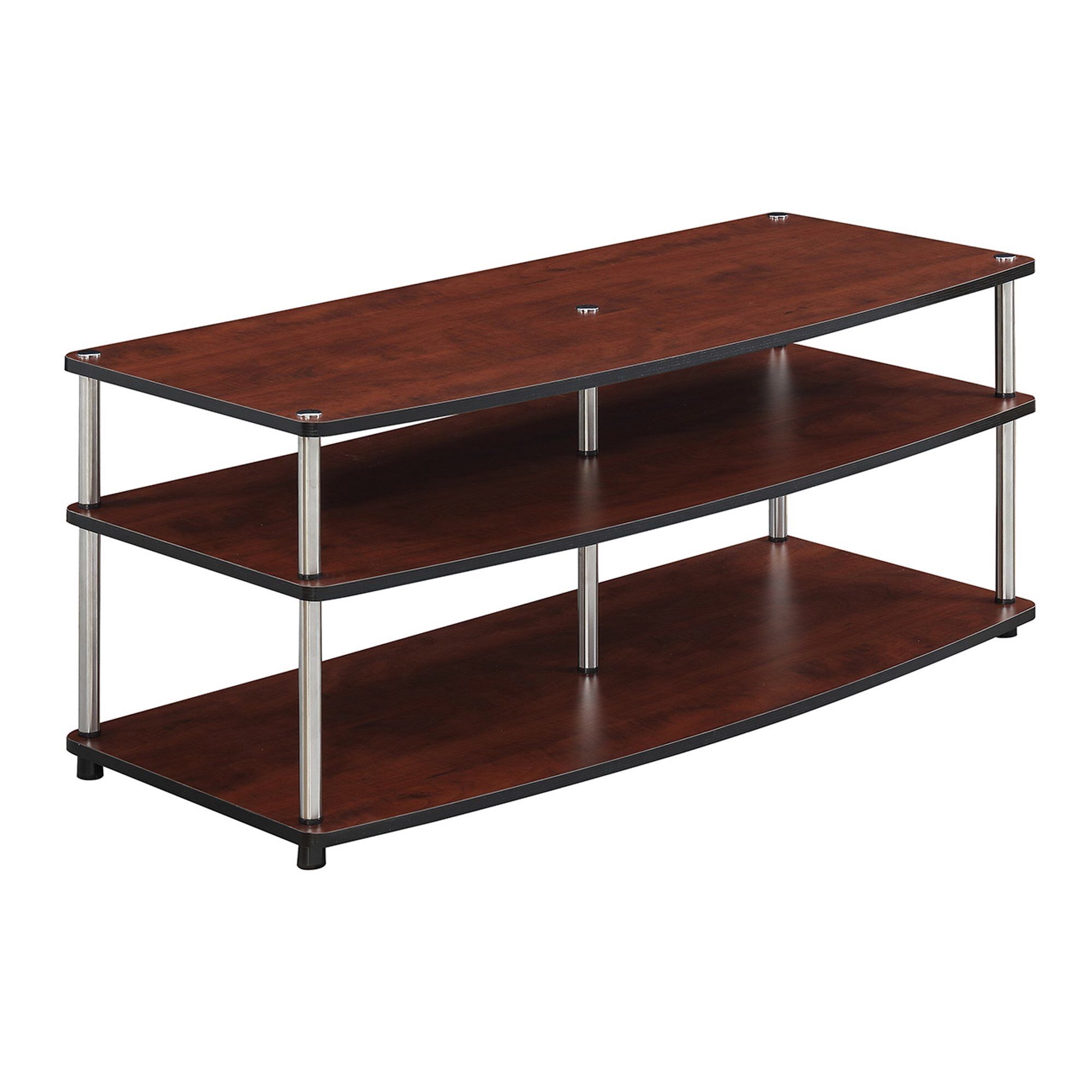 Brand New in Box. Also have the matching brand new in box end table for $30. Dimensions: 42W x 17.75D x 18H in. Crafted from engineered wood and melamine veneer Cherry finish 2 storage shelves Contemporary design Assembly required