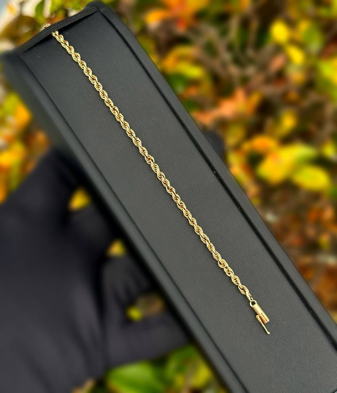 This gorgeous rope bracelet is made of 14k solid yellow gold with lobster lock. πSize: 7.75 inches length and 3.20mm width. Total weight: 6.10 grams.π€π₯° Handsome and stylish. Popular design. The best choice for you! Perfect gift! β€οΈππ We buy Rolex and Audemars, patek . Do layaway in VIP PAWN Coral Springs π₯ππΈ