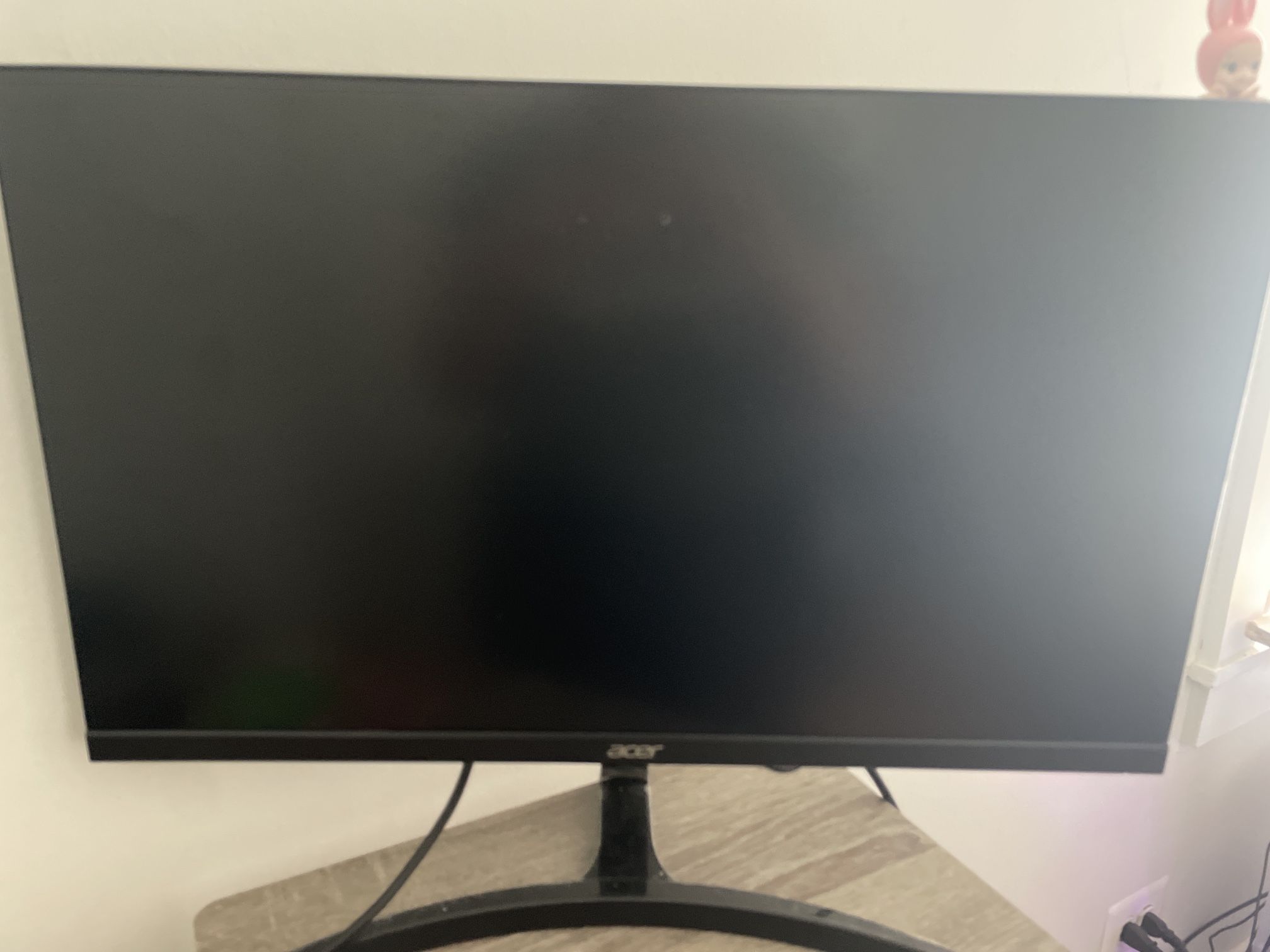 Black, flat screen monitor, has HDMI and USB-C. Amazing graphic quality, and very smooth. No lags or glitches.