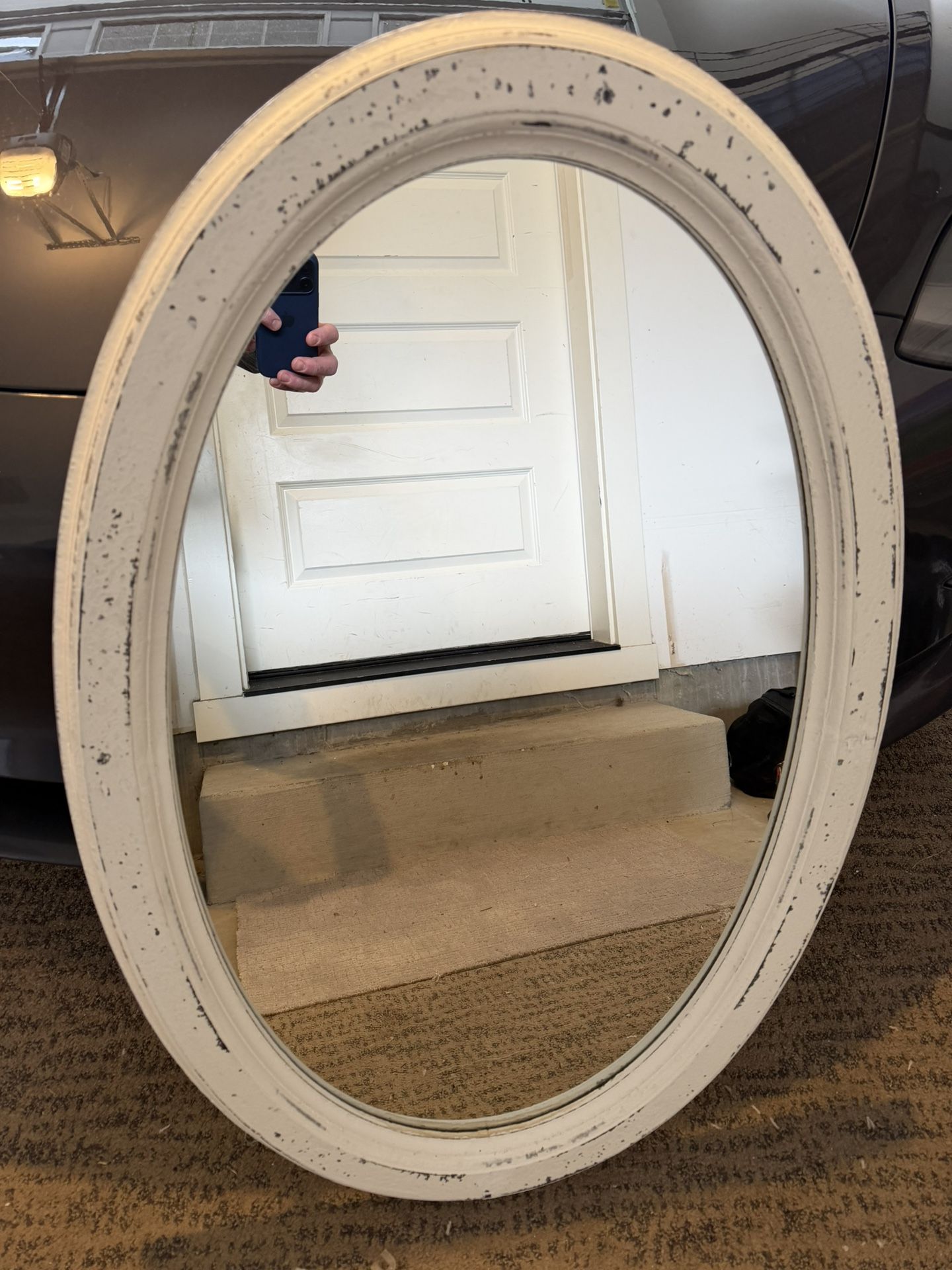 Great accent piece for bathroom, hallway, or bedroom. Clean mirror, solid frame, and hanging hardware already installed. Good condition with intentional distressing for a vintage look. Local pickup in Felida area. Cash or Venmo only.