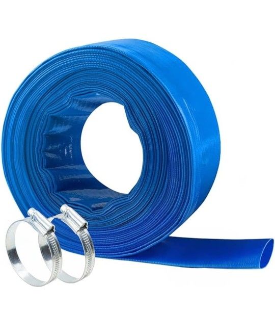 NUDAOS 2" x100 FT, Pool Backwash Hose, Heavy-Duty PVC Hose, Lay Flat Discharge Hose, Weatherproof Burst Resistant for Water Transfer, Sump Pump, Pool Filter, Pool Drain,with 2 Clamps
