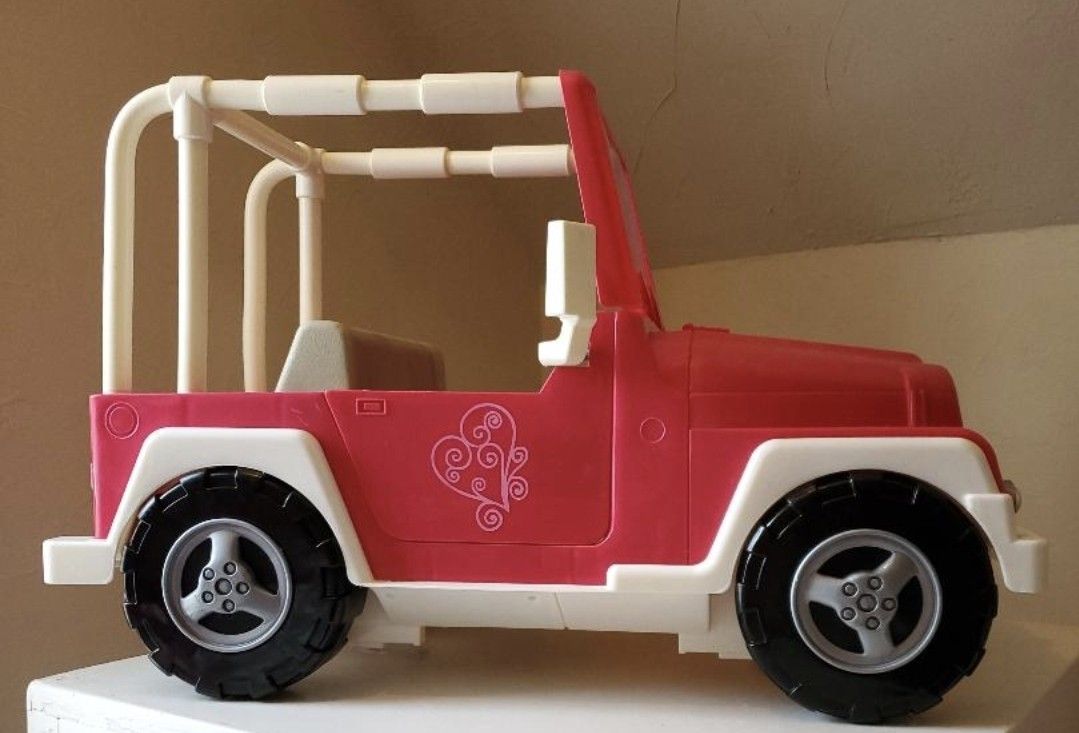 Our generation Fuschia Jeep, great for American Girl Doll's. Jeep is in great condition & is clean. Few scuffs, which are shown in pictures. Has hitch for camper- which I also have