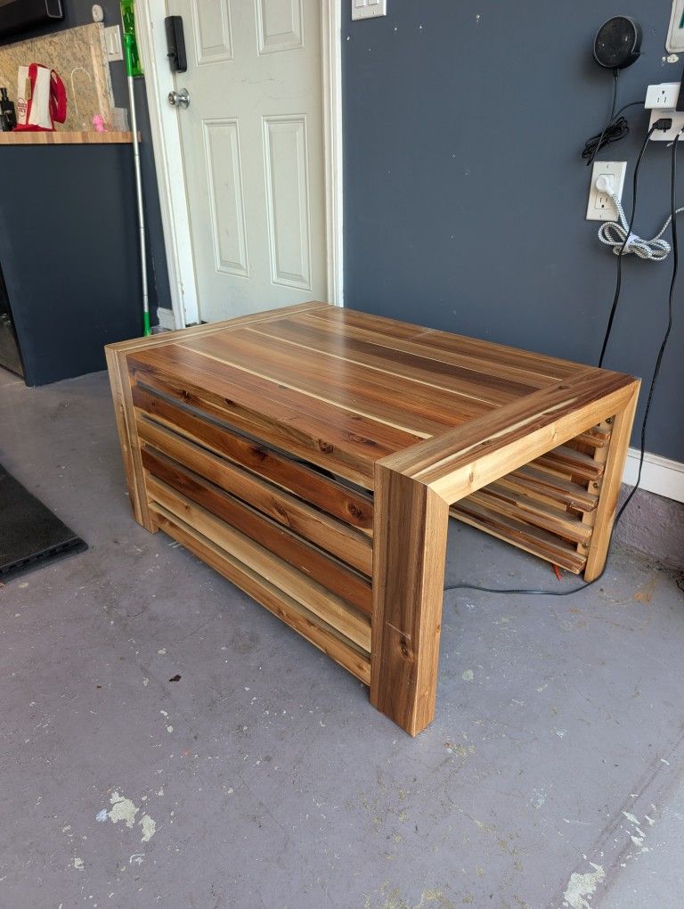 Selling as we don't have space for it. Kept in garage and has some light superficial scratches from our kids climbing on it. Please take it off our hands! $1300 new online so please make a reasonable offer. If you're reading this then YES it's still available! Used Transformer Coffee Table - Panel Storage Finish: Australian Acacia Doubles as a stylish coffee table and hidden panel storage solution for the Transformer Table. Crafted from solid wood with engineered hardwood panels—functional, elegant, and durable. Store all five table extension panels neatly inside, declutter your space effortlessly.