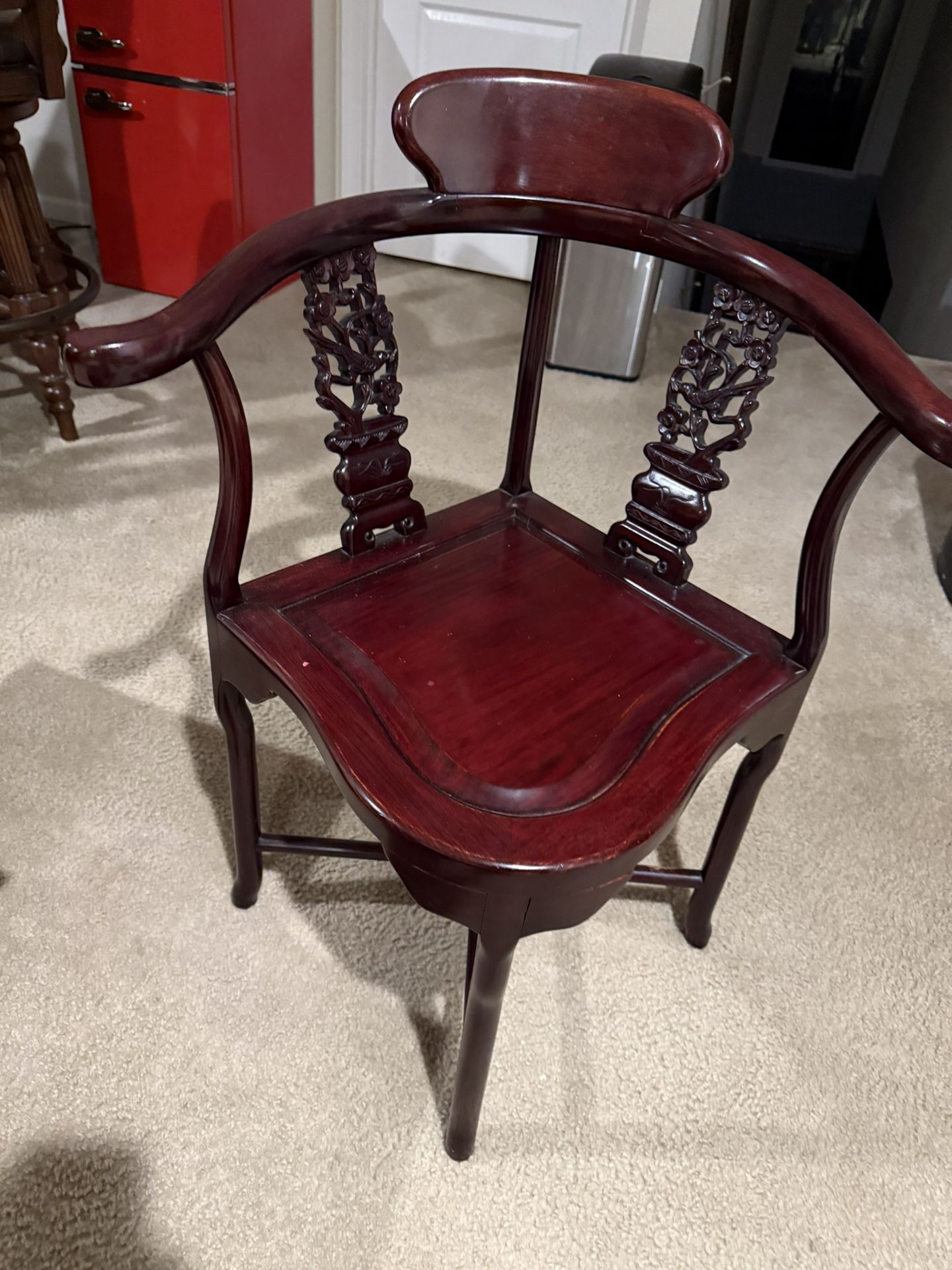 A Set Of Chinese hand-carved rosewood corner chair. (2)