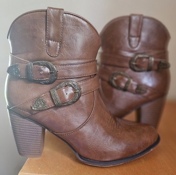 Cowgirl Boots Roper Women’s 6.5 Brown Heeled Western Buckle Detail. Size 9. In excellent condition, upper looks new bottoms have very mild wear. Pick up in South Grand Prairie 75054 area. Se habla Español.