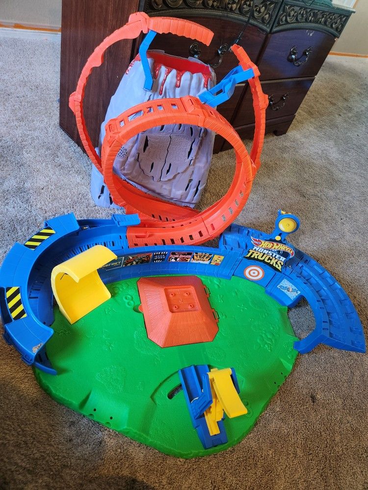 Hot Wheels Monster Trucks T-Rex Volcano Arena Playset hardly used. Works like new Retails for $177 Selling for only $40obo