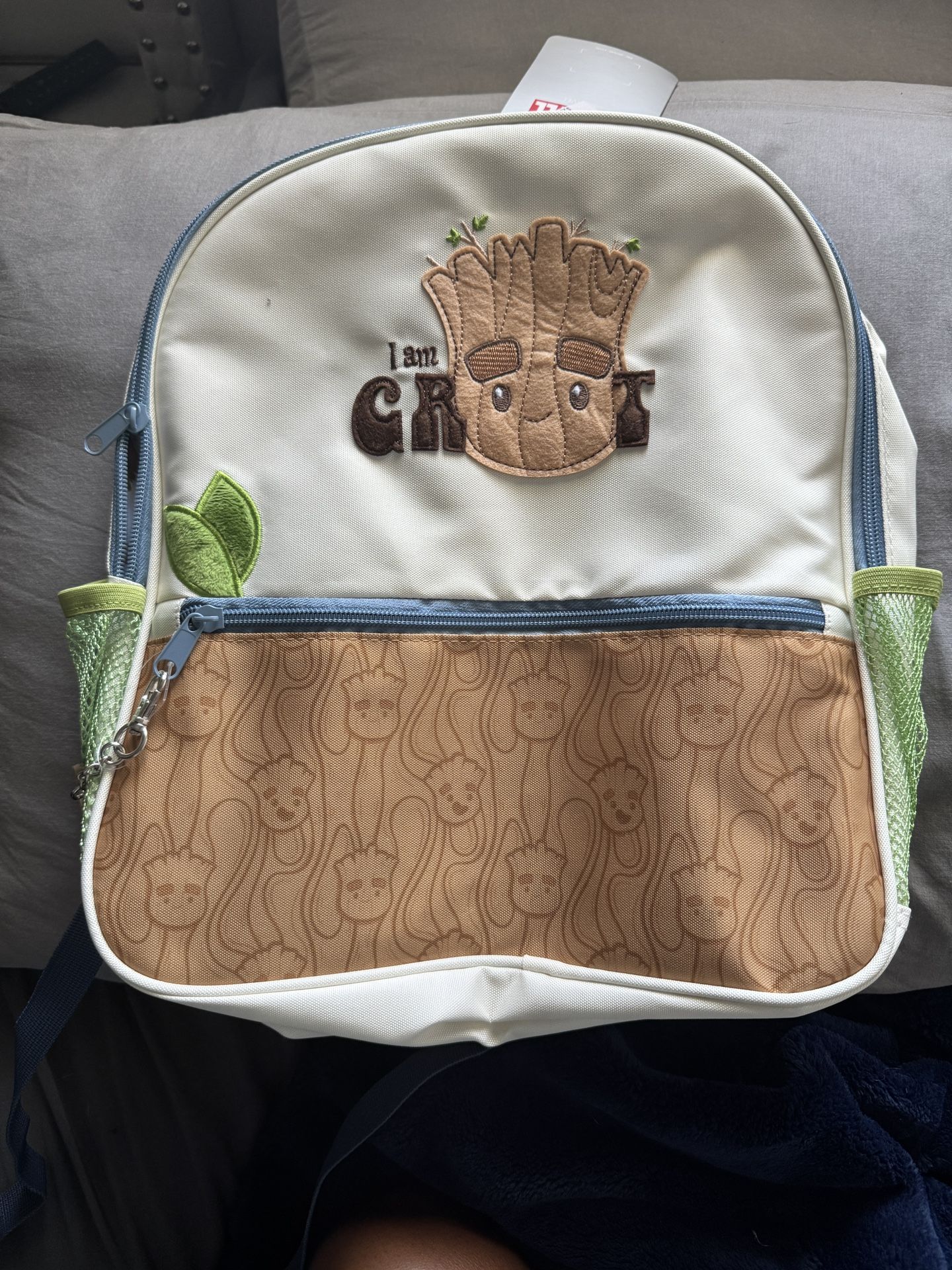 Cute Groot backpack from Disney Marvel’s Guardians of the Galaxy. Kids sized with 2 holders for water bottles. Brand new, never used.