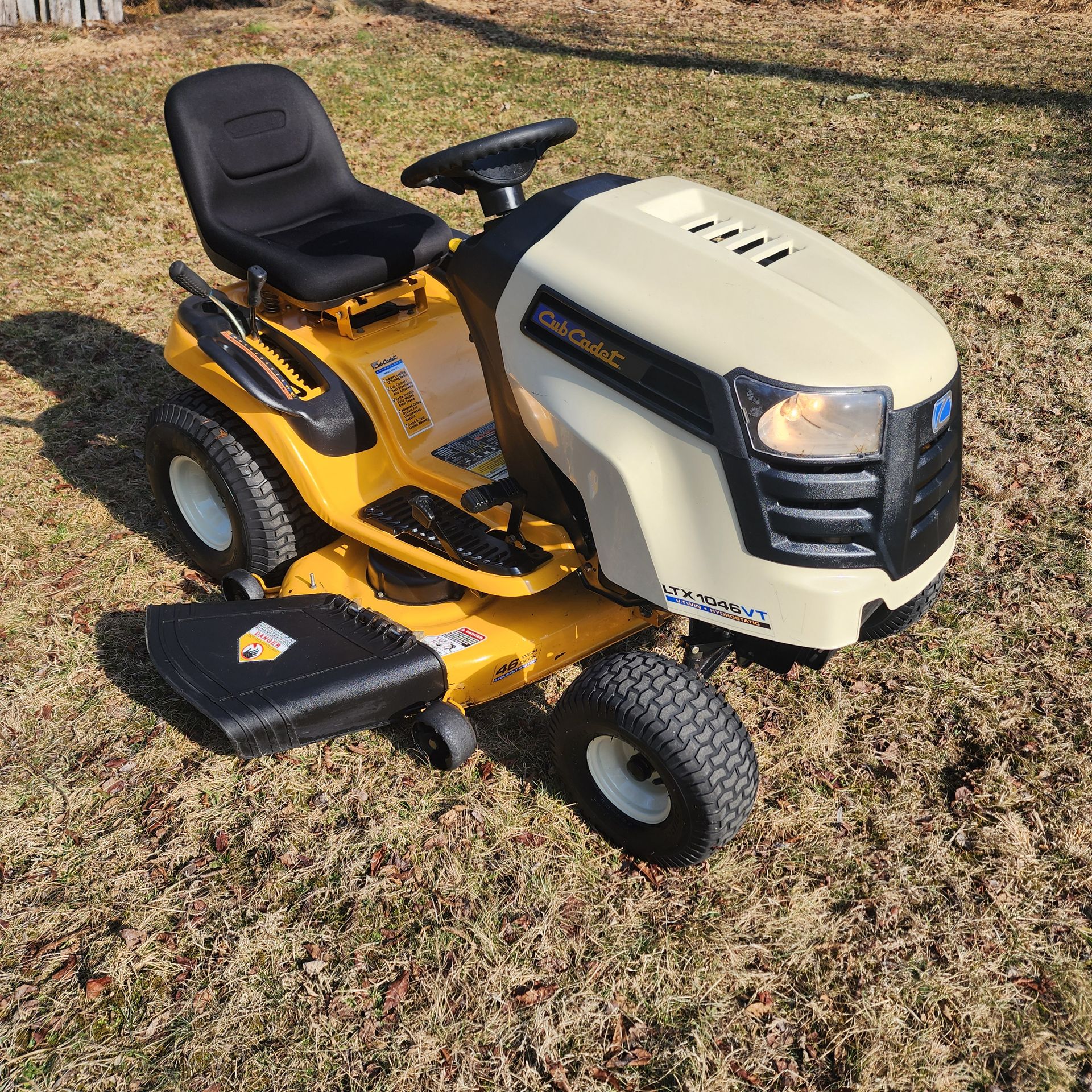 Cub cadet LTX1046VT riding lawn mower tractor with 46 inch deck and 20hp kohler engine. Runs and cuts. Has hydrostatic transmission. Will deliver within reasonable distance. Asking $1200