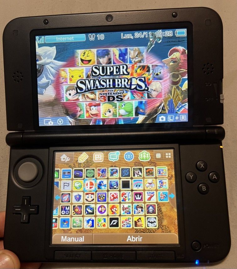 Vendo Nintendo 3ds Xl Modded/Jailbroken con memoria de 128gb con varios juegos instalados y con varios emuladores de retro consolas instalados en twilight menu, tiene instalada la tienda para descargar mas juegos gratis no incluye cargador. I'm selling a modded/jailbroken Nintendo 3DS XL with a 128GB memory card. It has several games installed and various retro console emulators installed in the Twilight Menu. It also has the store installed for downloading more free games. Charger not included.