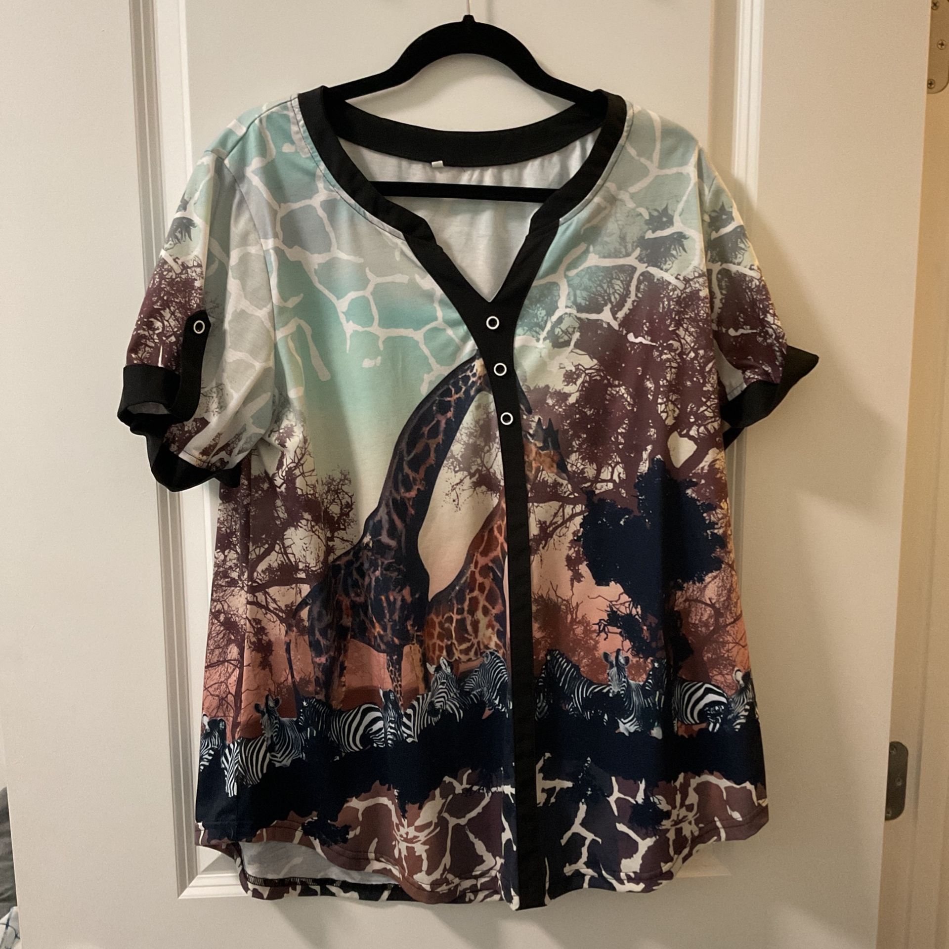 This would be great to wear to the zoo, Extra Large Women’s Shirt Giraffe Print 95% Terylenene 5% Spandex