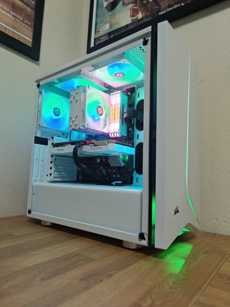 Custom Built Gaming PC Computer White Ryzen 5500, AMD RX 6600, Corsair 32GB DDR4, ASUS,