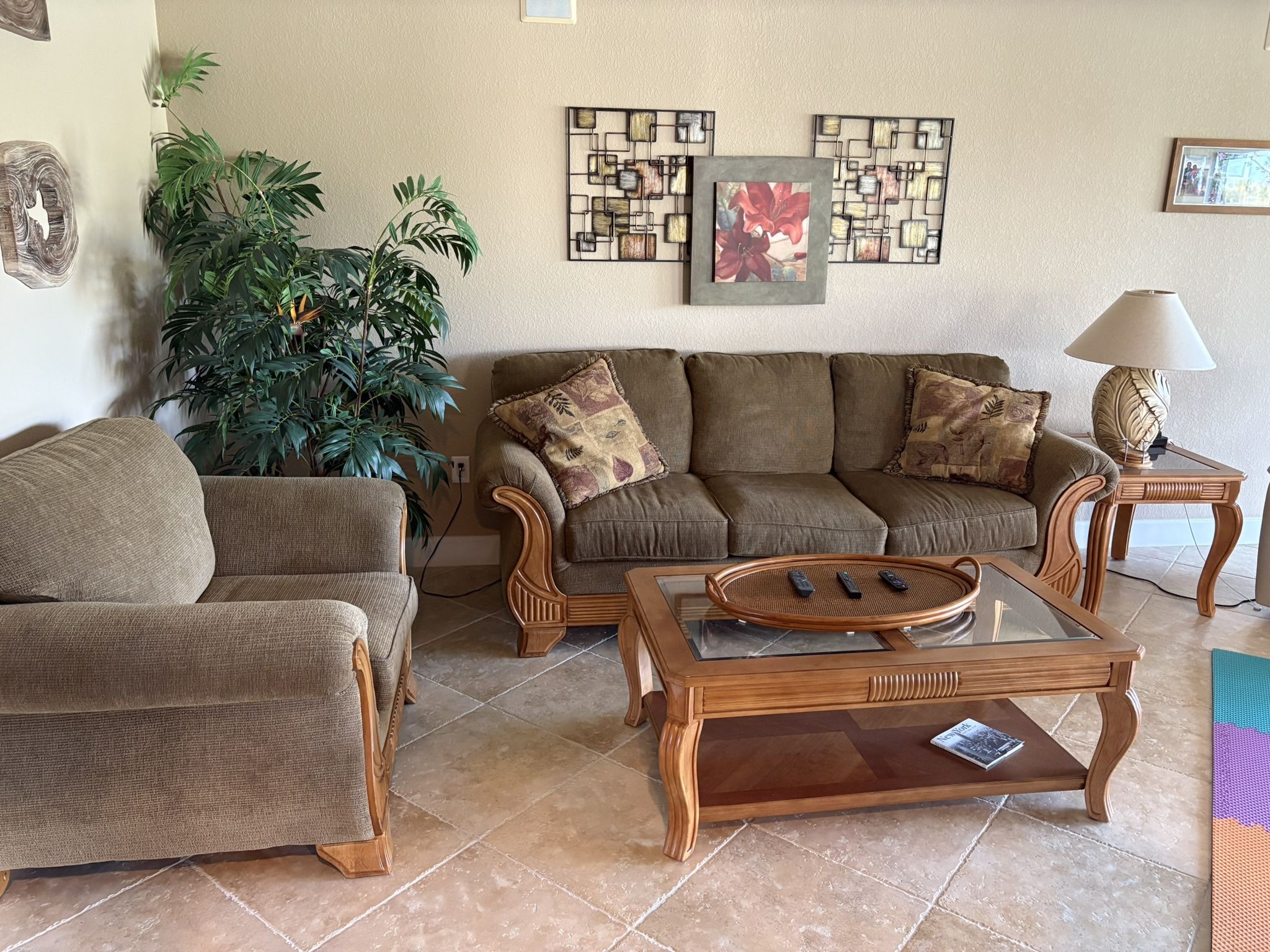 Living room furniture…ALL pieces or individual including faux plant and wall decor (excluding ones over chair)…outstanding condition, only used seasonally….$300