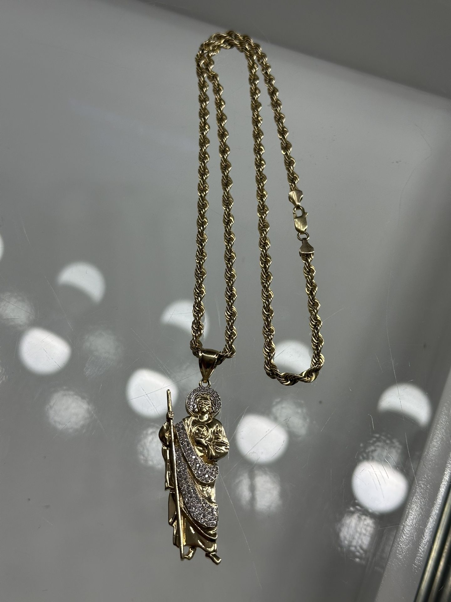 10Kt Gold Rope Chain + San Judas