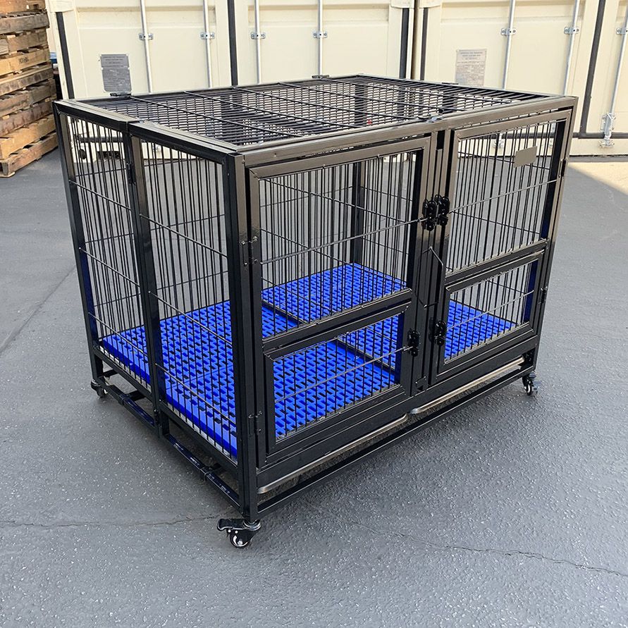 (NEW) $190 Folding Heavy-Duty Dog Crate 41”x31”x34” Dual-Door Stackable Cage Kennel, Divider, Plastic Tray