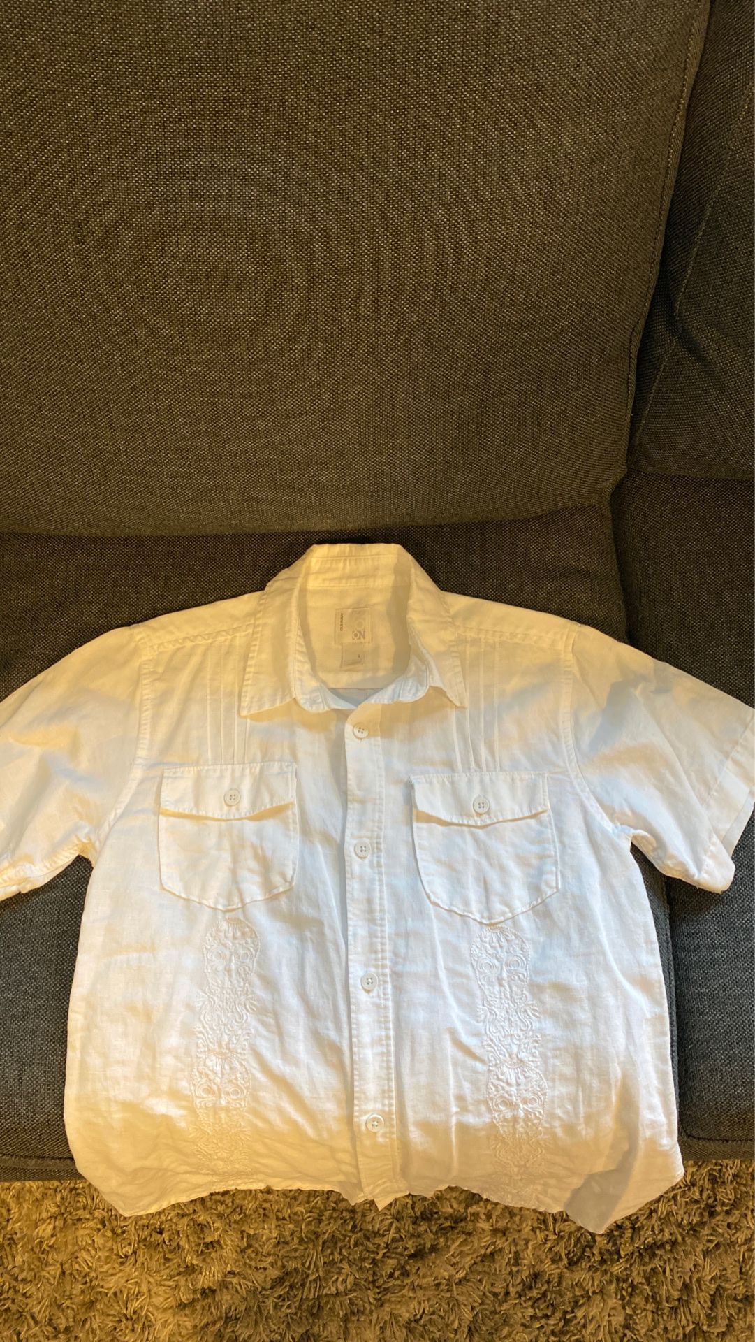 Old Navy size 10-12 Boys short-sleeve dress shirt. 53% Linen, 47% Cotton