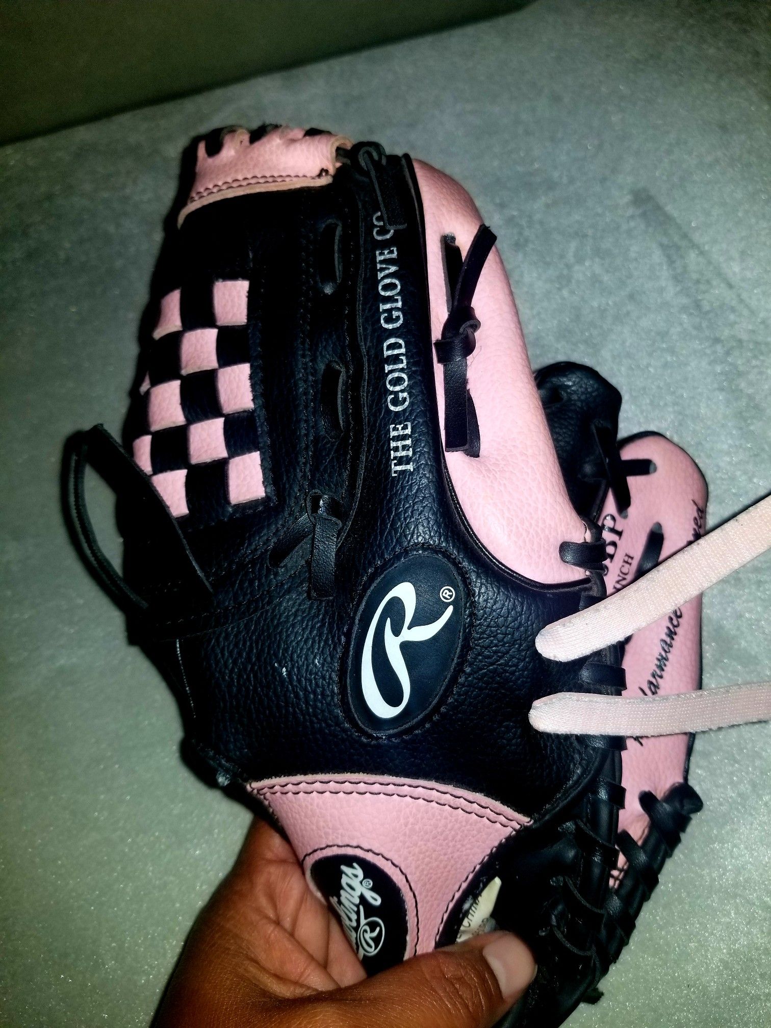 Rawlings pink and Black Baseball glove...size 9 1/2 inch...fits youth small child...fits on Left hand...Great condition!