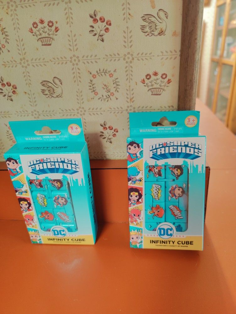 brand new in box DC super Friends Infinity cube fidget toy anxiety stress ages 3 plus and XFinity cube is kind of a mechanical puzzle toy with mathematical principles, its shape is similar to a 2x2 Rubik's cube. it can be opened and put back together from different directions creating a visual effect. I HAVE TWO AT $5 EACH ARLINGTON PORCH PICK UP NO SHIPPING