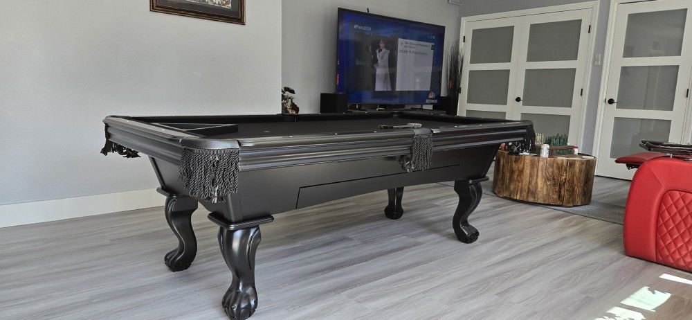 7ft, New pool tables made in USA Solid wood hard maple and oak Includes Delivery and installation Any color felt Leather pockets 3 piece slate Brazilian Accessorie kit standard