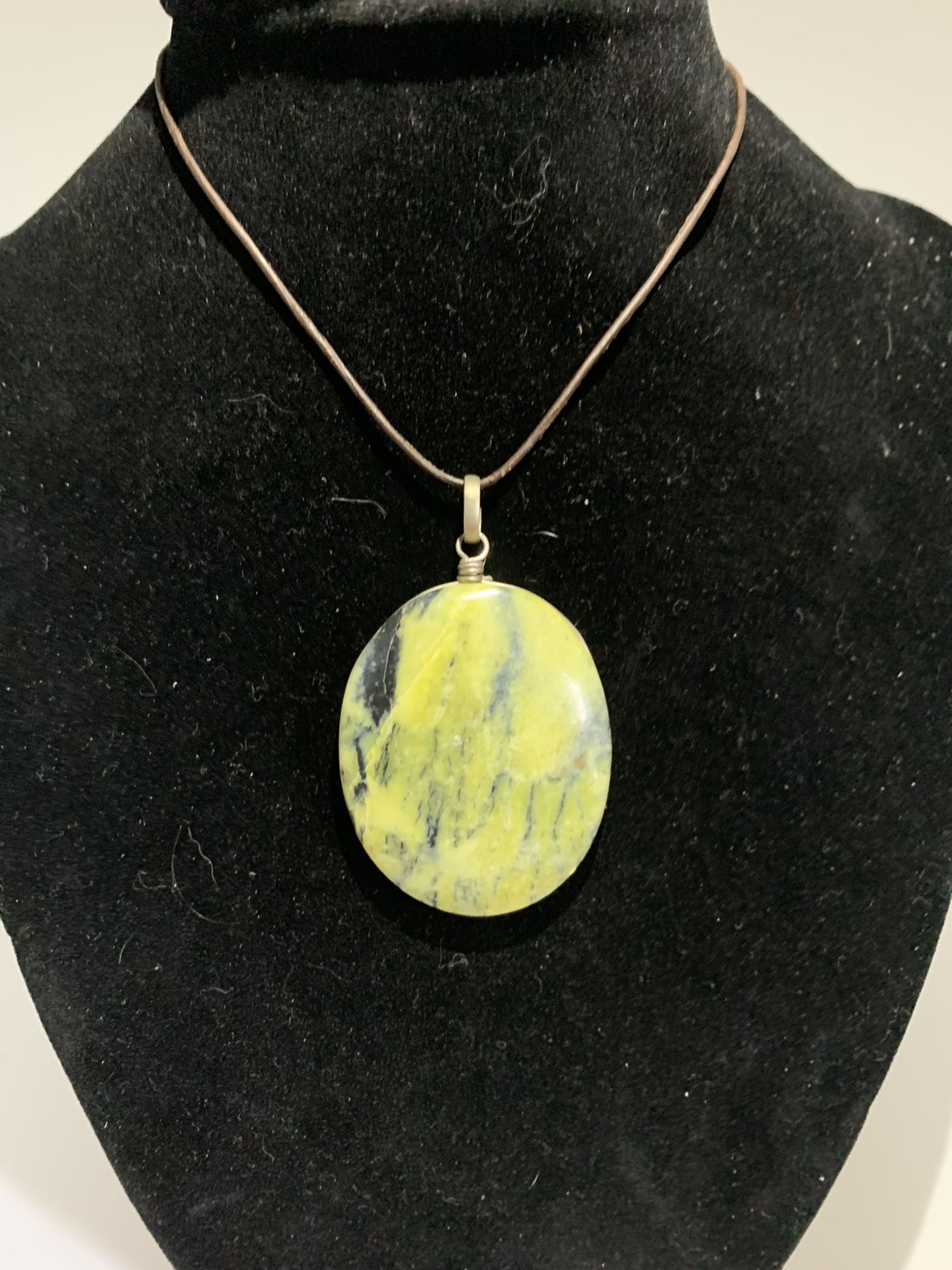 Serpentine Gemstone Oval Pendant / Leather Necklace