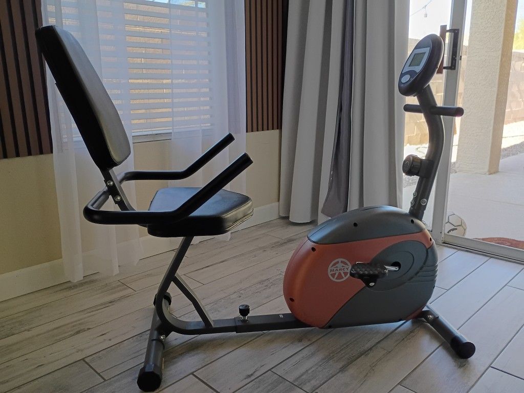 Marc Marcy Recumbent Exercise Bike in great condition. Used only a few times and kept indoors. Comfortable padded seat with back support, smooth pedaling, and a digital monitor that tracks time, speed, distance, and calories. Perfect for low-impact cardio at home. Clean, sturdy, and ready to use! Pickup only. exercisebike #recumbentbike #Marcy #homegym #workout #fitnessequipment #cardiobike #forsale #offerupfinds #gymgear.