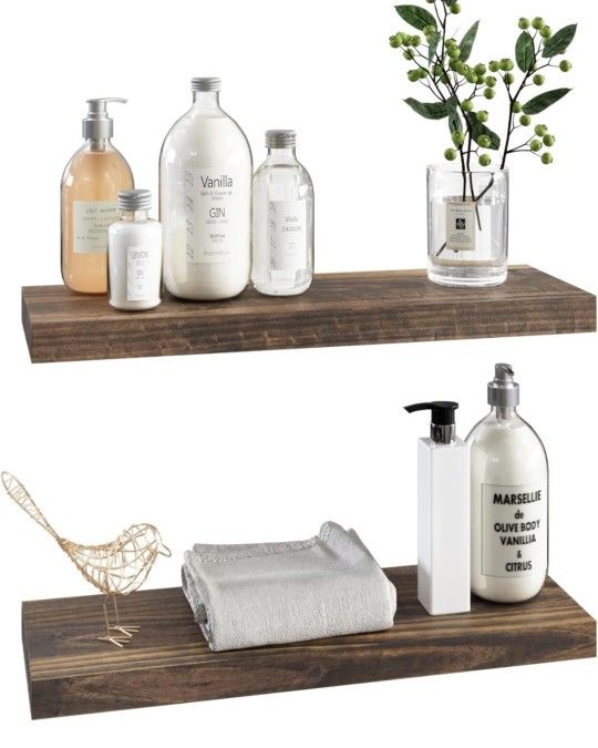 LETTO Set of 2 Solid Wood Floating Shelves - Floating Shelves for Wall - Bathroom Wooden Shelves - All Included Set-up - Mounted - Home Decor - 24" Wi