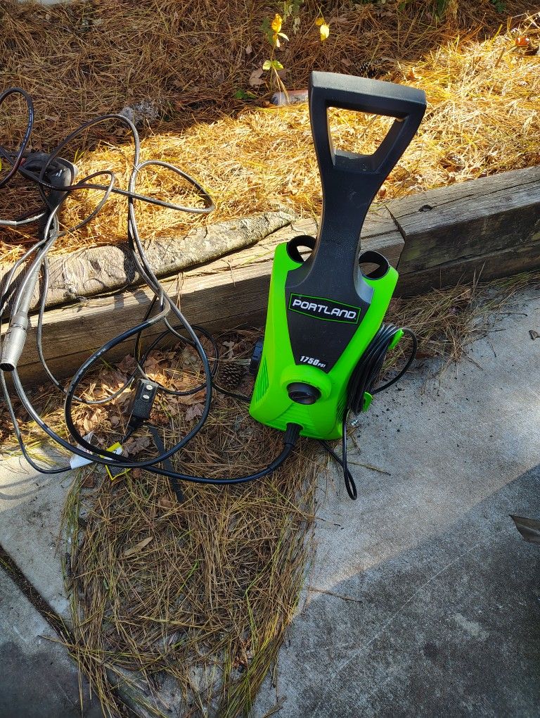 This electric pressure washer delivers up to 1750 PSI to power-clean walls, yard equipment, and vehicles. Lightweight and portable, this pressure washer features a pressure hose over 20 ft. long along with 4 in. diameter wheels for easy mobility. Adjustable spray nozzle 20 ft. high pressure hose Stops automatically when trigger is released to prolong motor life Smooth-rolling 4 in. diameter wheels Upgrade your PORTLAND™ Pressure Washer by adding the Quick Connect Pressure Washer Spray Wand (sold separately) so that you can use turbo nozzles, spray tips, and other accessories
