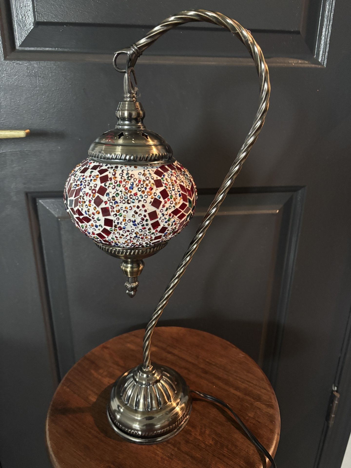 Entire lamp 18"L Mosaic Ball Ball 5xx41/2L" Beautiful and intricate home décor piece that can elevate any room. Handcraft from glass, these lamps often feature colorful geometric patterns